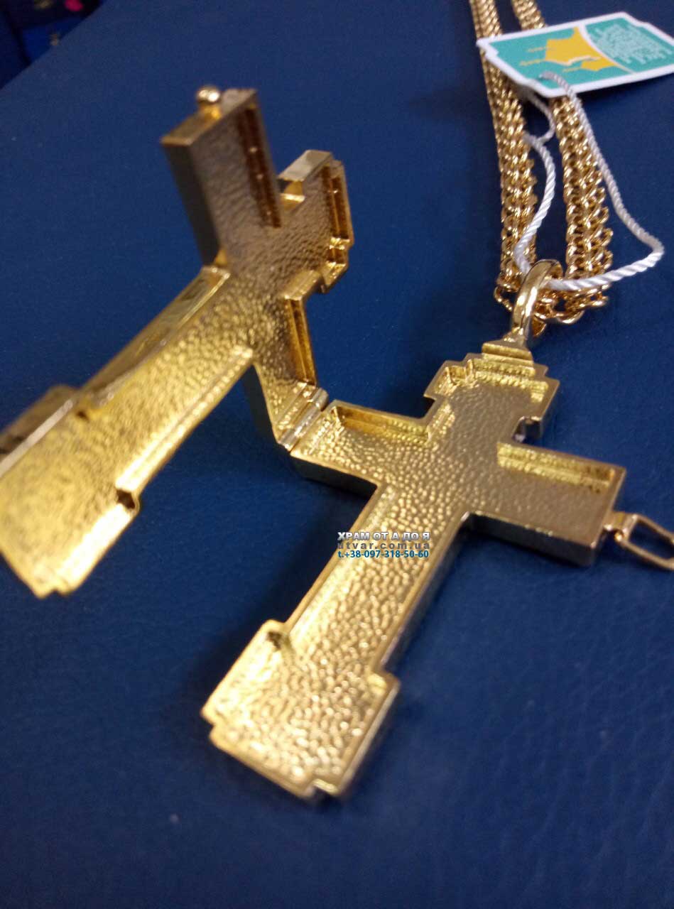 Хрест для священнослужителів латунний із фрагментарною позолотою принтом та ланцюгом