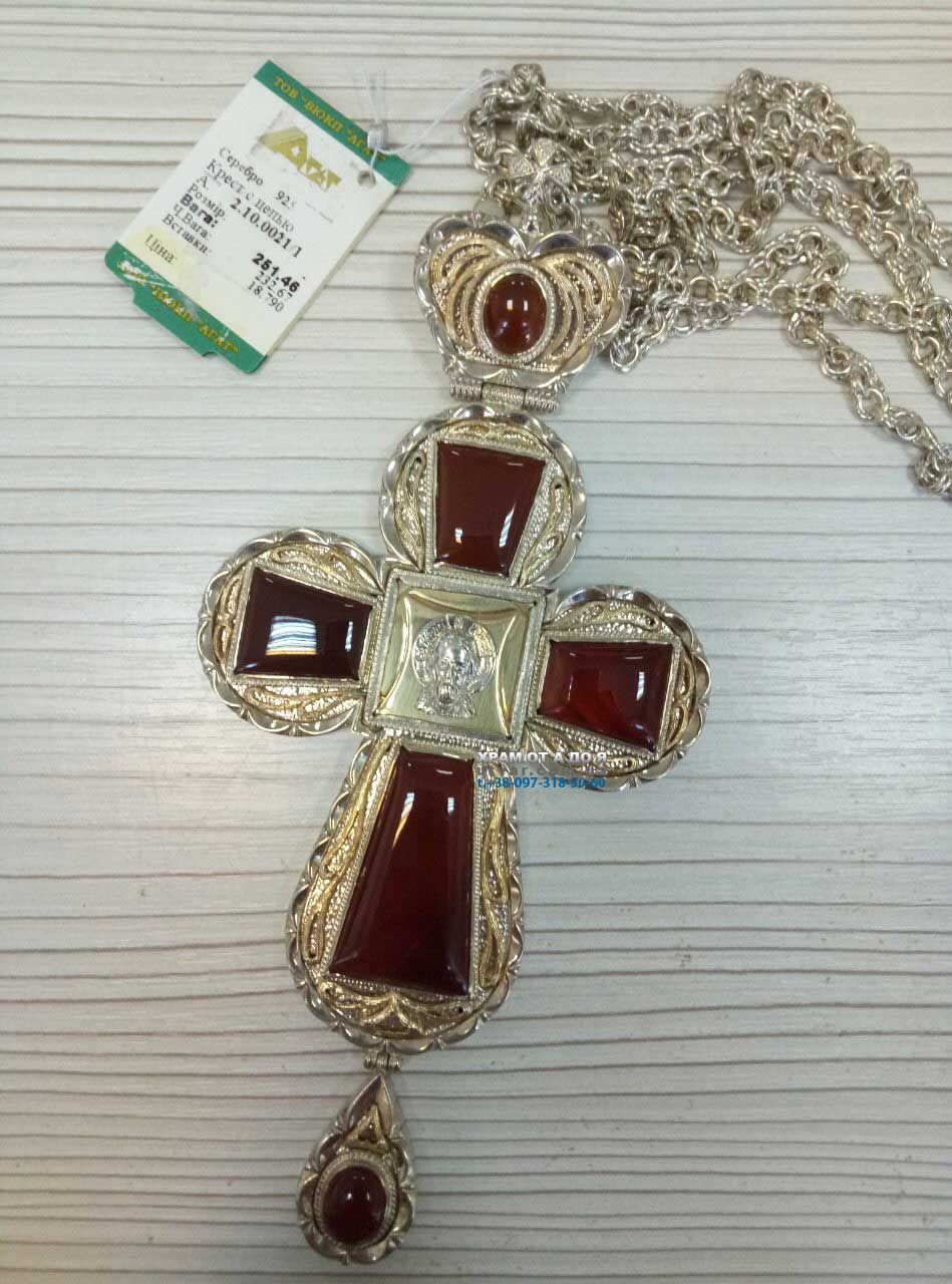 Хрест для священнослужителів латунний із фрагментарною позолотою принтом та ланцюгом