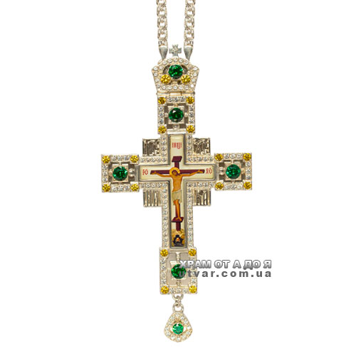 Хрест для священнослужителів латунний з принтом та зі вставками з ланцюгом