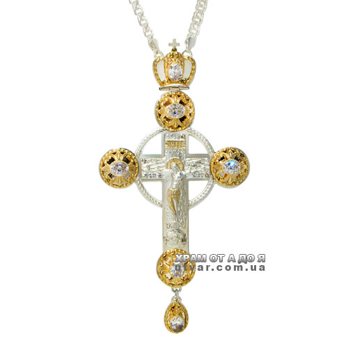 Хрест для священнослужителів латунний із вставками з ланцюгом