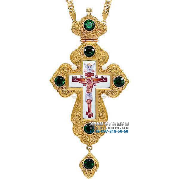 Хрест латунний у позолоті з фініфтом та ланцюгом