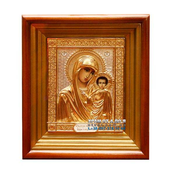 Настінна латунна ікона в позолоті Богородиця Казанська
