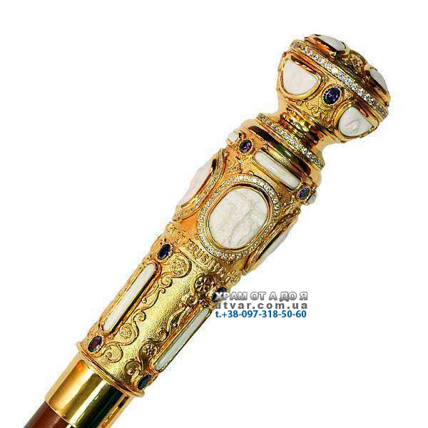 Посох латунний у позолоті з кістяним чином