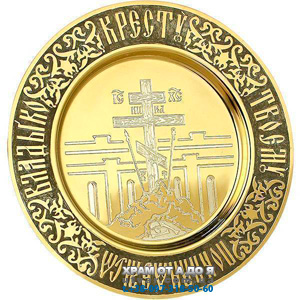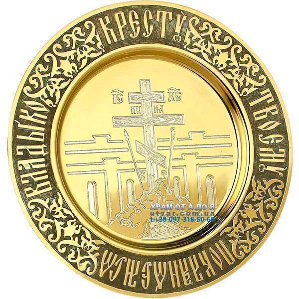 Тарілочка латунна Голгофа з позолотою та народженням