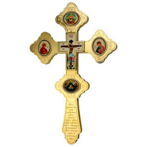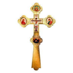 Хрест напрестольний латунний позолочений з принтом