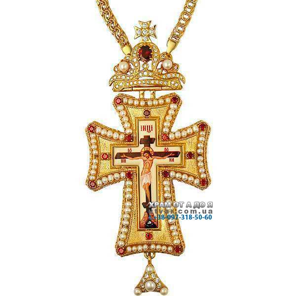 Хрест із ланцюгом для священнослужителя з перлами позолочений