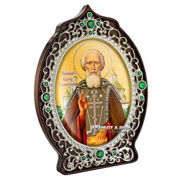 Ікона латунна на дереві Святий Преподобний Сергій Радонезький